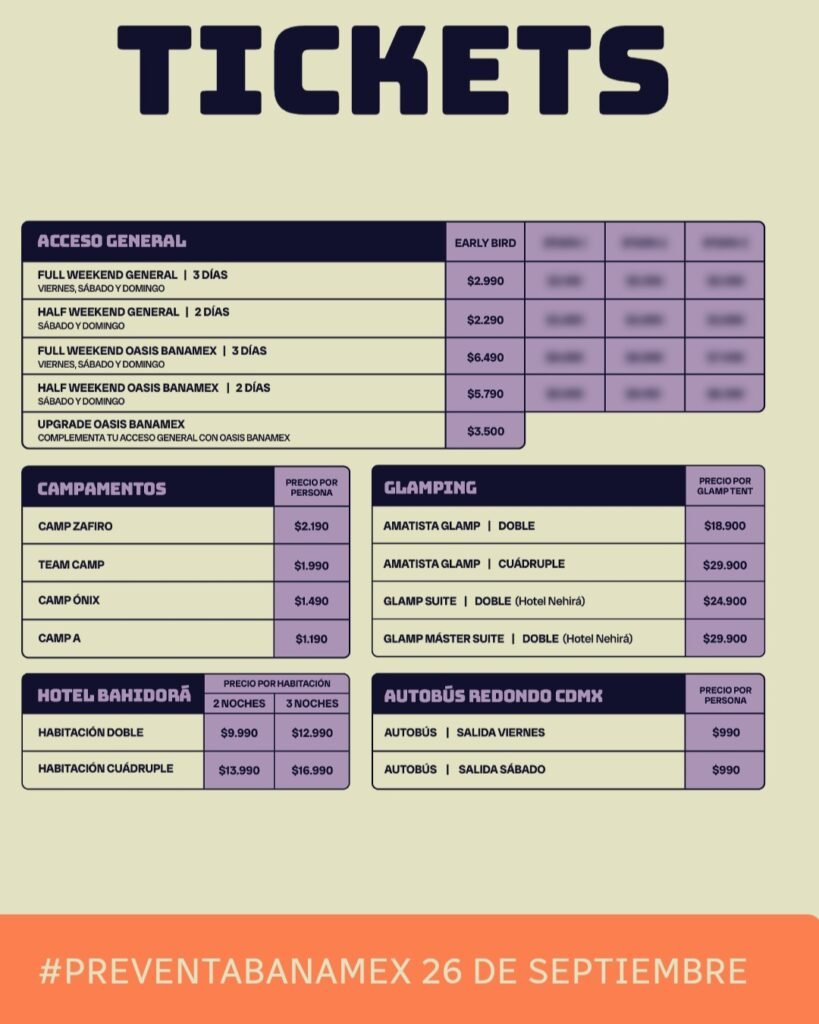 Y si lo tuyo es disfrutar con un toque extra de confort, Oasis Banamex te espera con mesas, sombra, baños privados y barra de bebidas para vivir la música con toda la energía, pero en tu propio espacio.