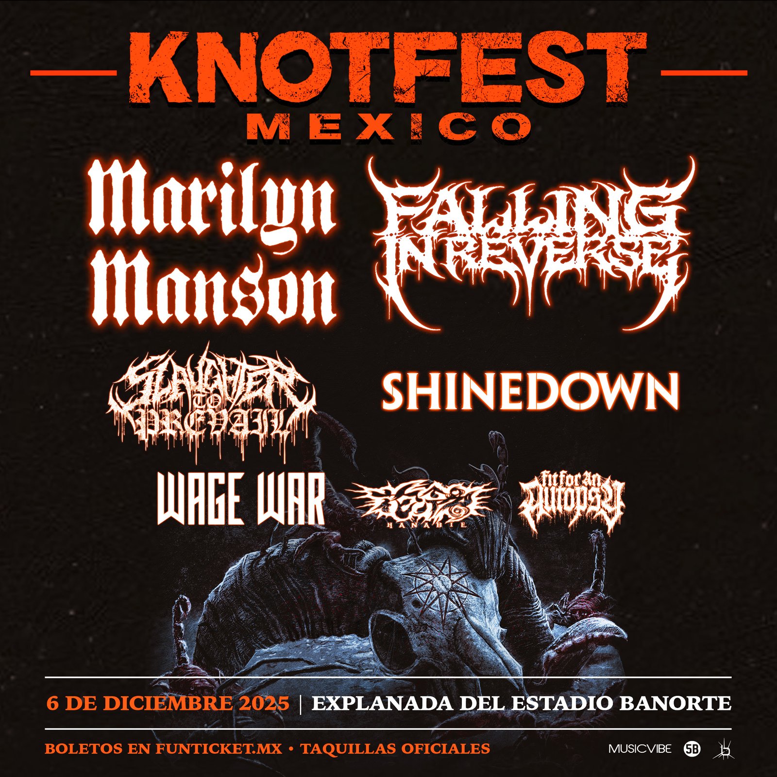 El cartel también incluye a Fit For An Autopsy, Shinedown, Slaughter To Prevail, Falling In Reverse, y como headliner, el polémico e imponente Marilyn Manson.
